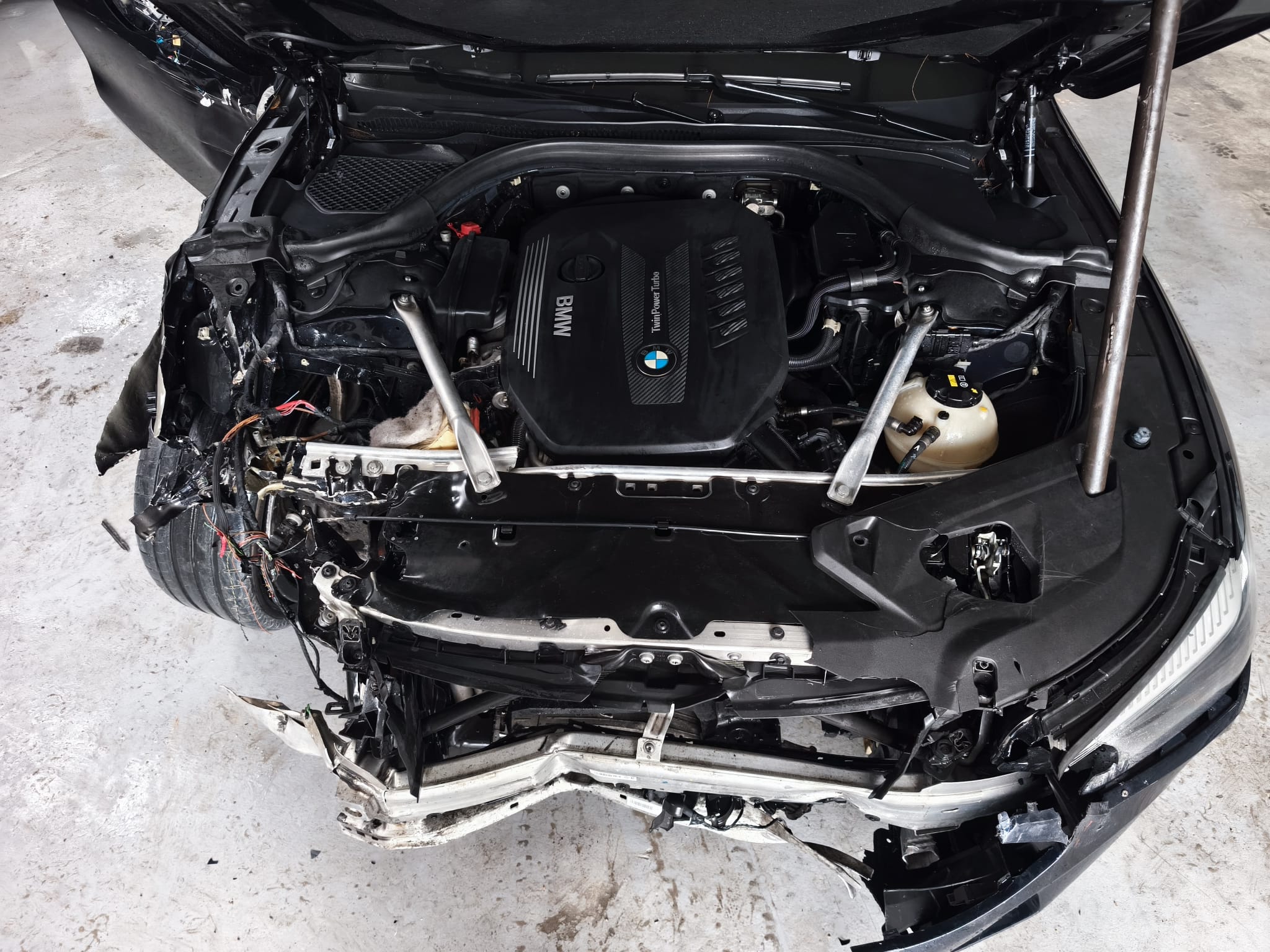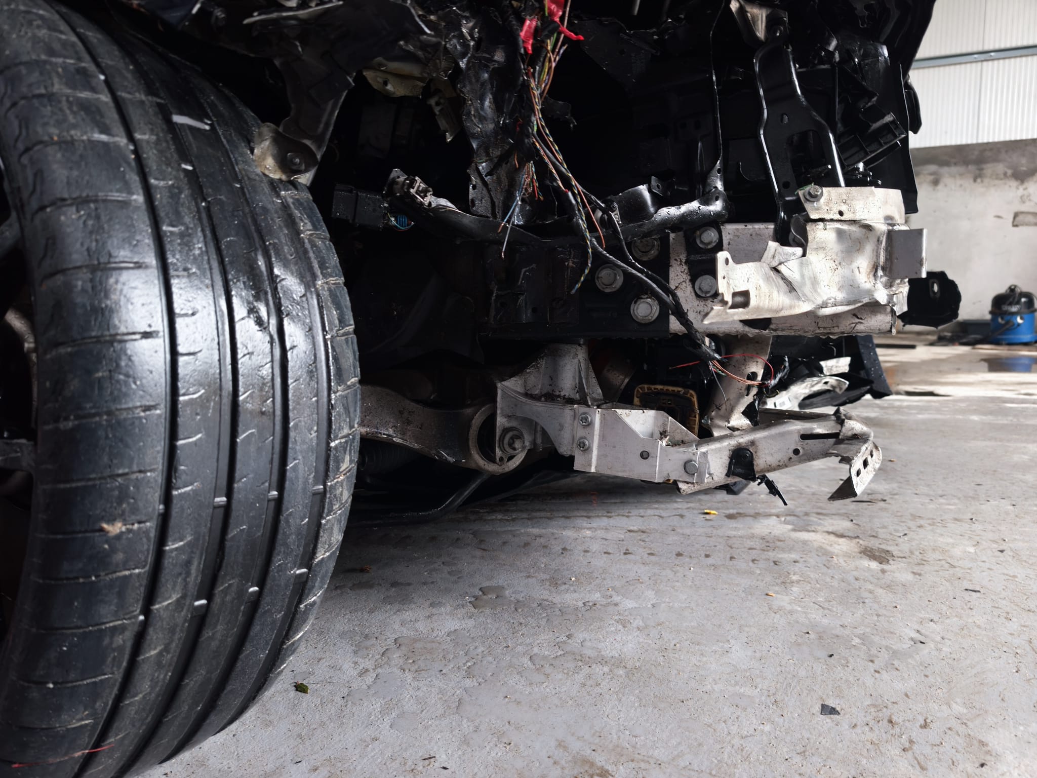 O veículo trabalha e anda, apesar dos danos significativos na zona frontal e lateral esquerda.