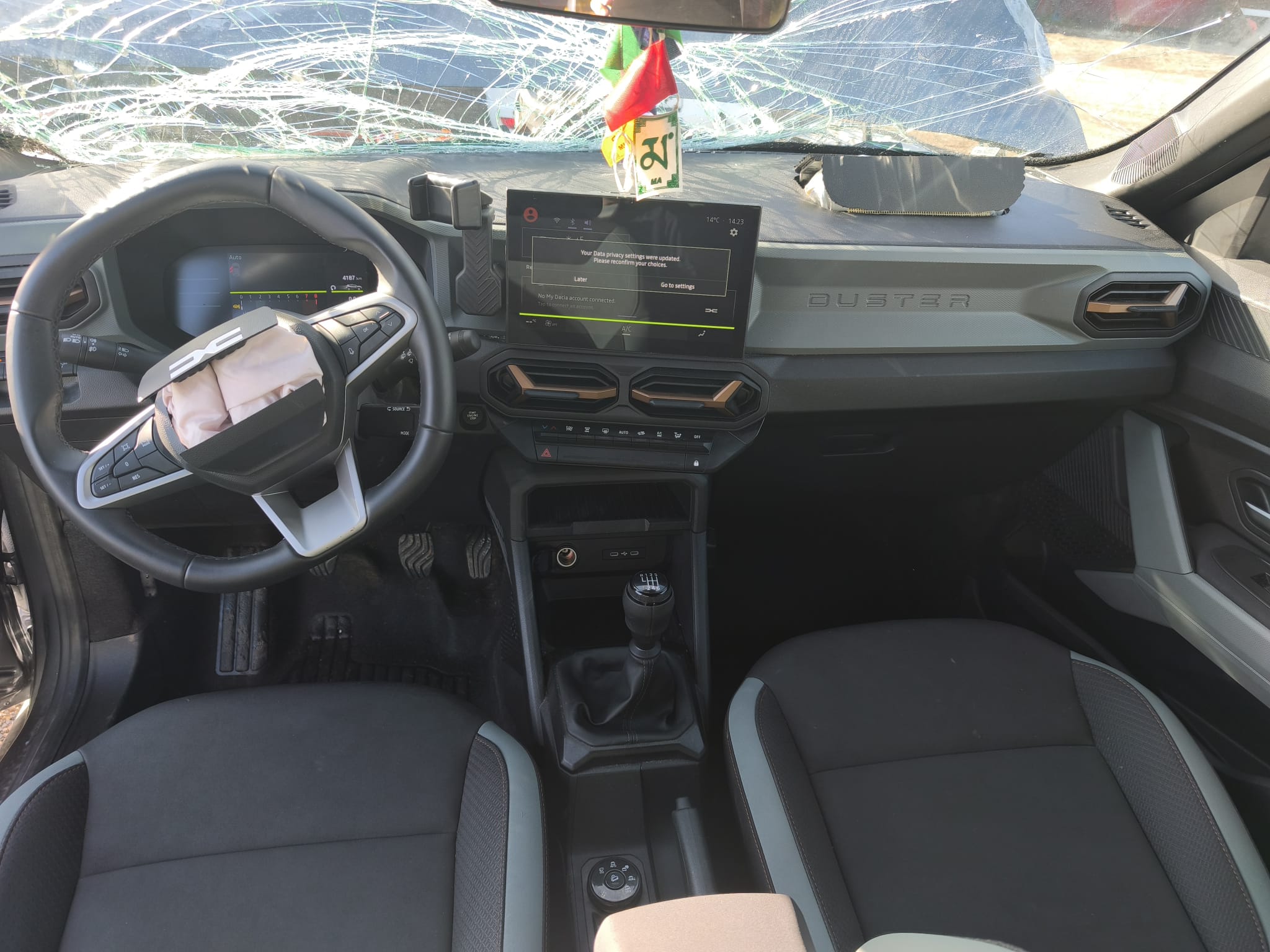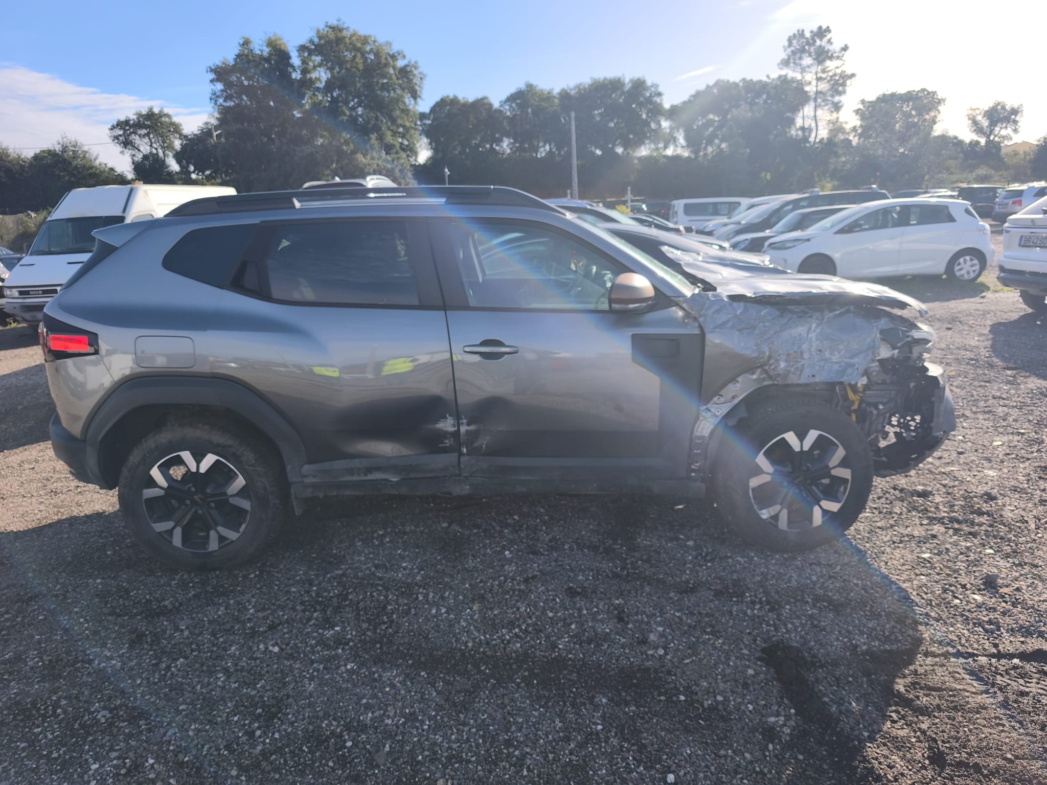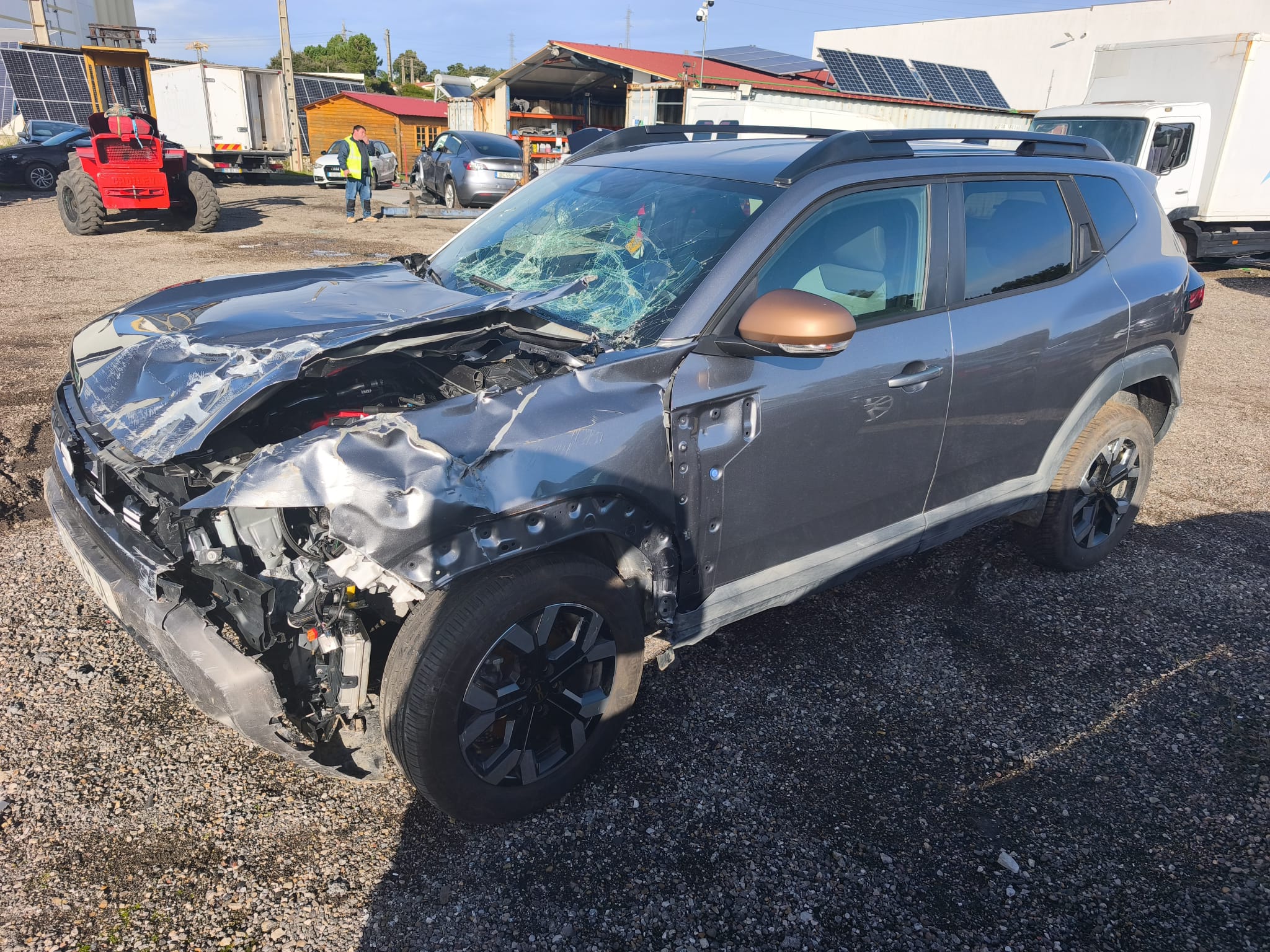 Dacia Duster 4×4 GPL de 2025, viatura praticamente nova com apenas 4.000 km, proveniente de sinistro frontal de grande impacto. O veículo não trabalha de momento.